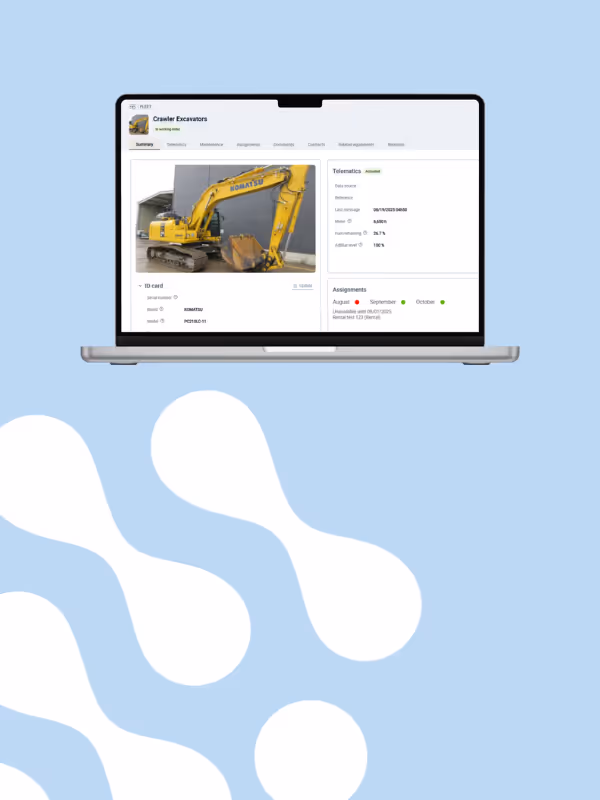 Track all your machines, whether they are owned, rented or subcontracted, in one place. Gain full visibility of their location, usage and availability.