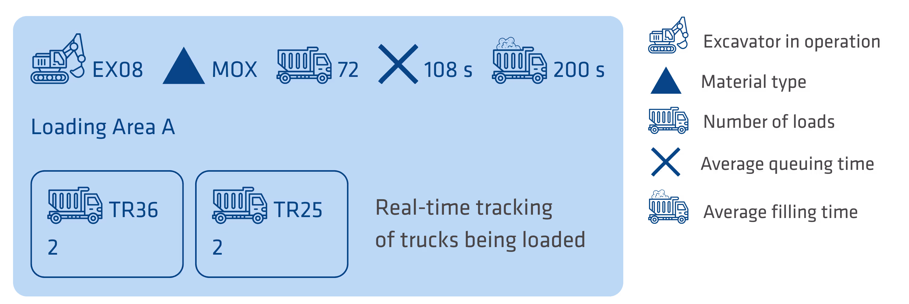 • Les camions ont été réaffectés de manière dynamique afin de redistribuer la charge de la flotte et de réduire les temps d'attente aux points de chargement grâce à une répartition supervisée.
